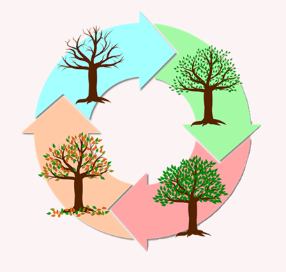 Deze cyclus van 4 fasen schijnt een eeuwigdurend proces te zijn. Dat kunnen wij met onze menselijke hersenen echt niet begrijpen. Maar we kunnen wel enigszins een idee krijgen van wat er bedoeld wordt als we kijken naar de vier seizoenen.